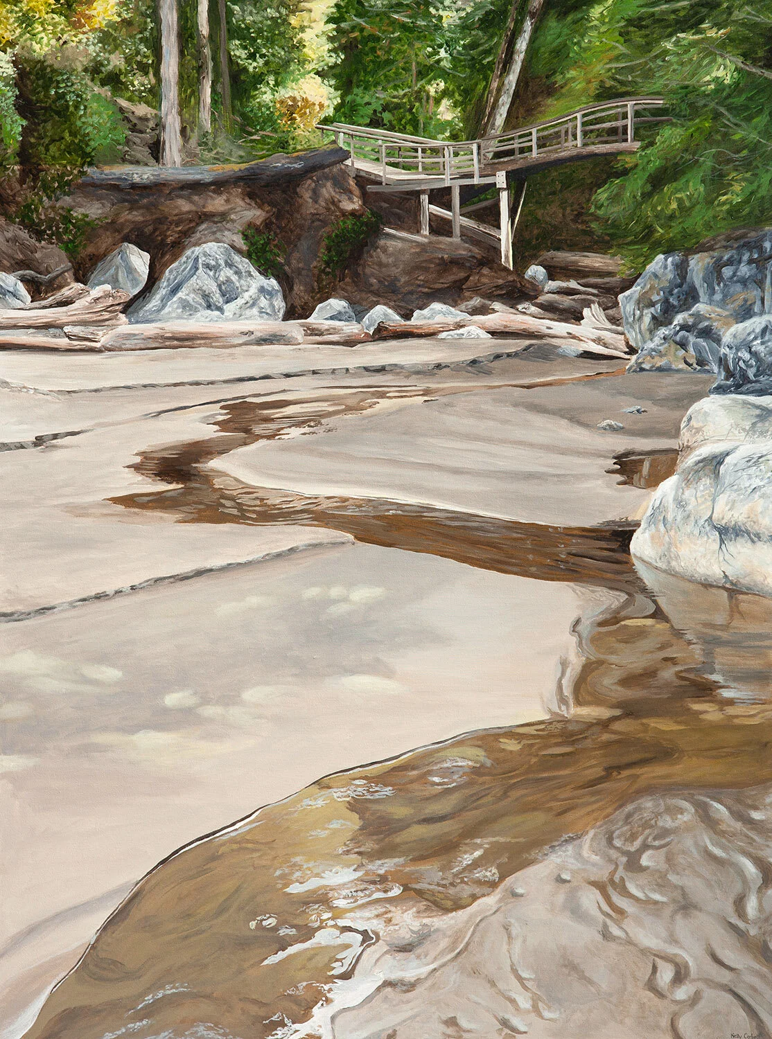 "Extent", defined as a measure of size and space. I chose this title to reflect two aspects: one, that I create large scale realistic paintings; and two, that these paintings depict some of the vast and varied landscapes of British Columbia (with a focus on the West Coast). As a realist painter my motivation is to share my visual experiences. To create paintings that speak both to me and to others about the beauty that exists in British Columbia. My style invites the viewer to recall their own past adventures and relive the sights and scents of BC’s natural environment. Through my artwork I try to bring the outside in, to pay tribute the natural world and remind us how rewarding it can be to take the time to reconnect with nature.
