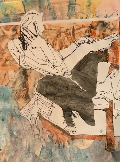 My practice consists of weekly figurative work and plein air. I find this work to be playful, reflective including both the figurative and organic feel of nature. The figure is looking at nature and being immersed in nature and reclining on fabric that feels tactile and organic.