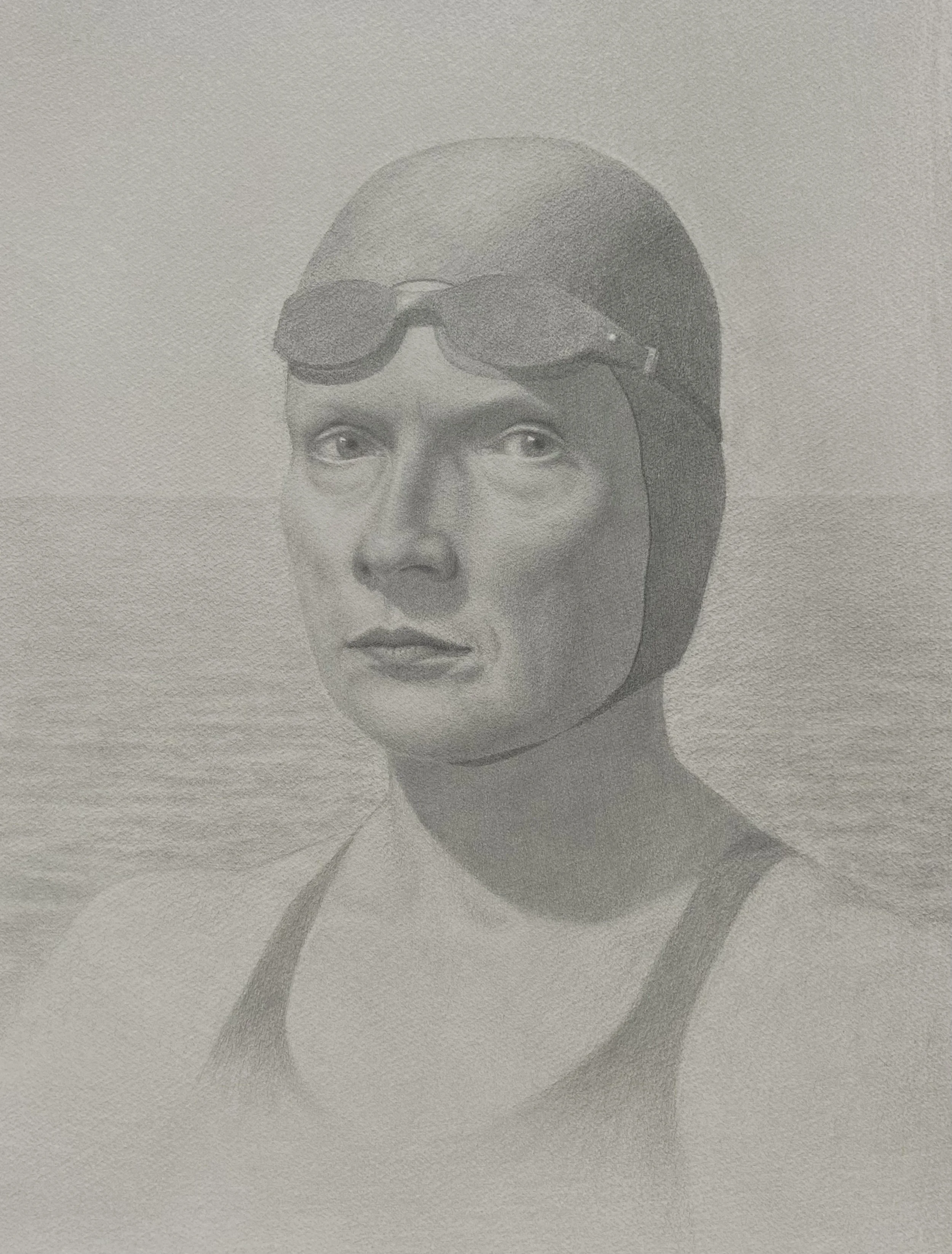 Ingrid Weiss, ‘Swimmer- Self Portrait’, 14” x 18”, Graphite on Toned paper , $700.00