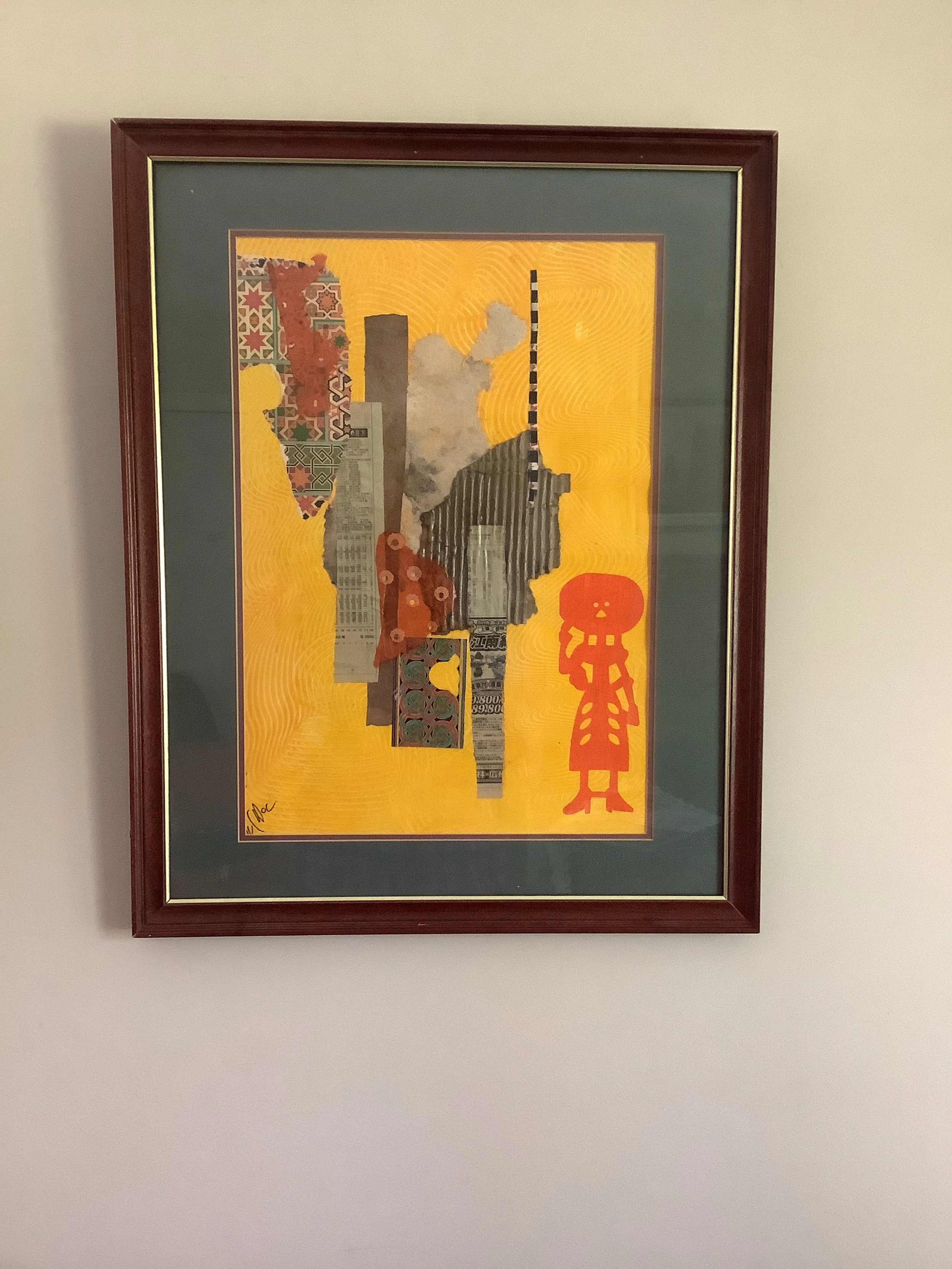 Although this piece is not a typical self portrait, it is very much a reflection of me and my life, past, present and future. The collage elements are comprised of many different aspects of my life- bits of nostalgia, ephemera from my current life and pieces that point to what I want for my future self. Some of this is plain to see and some of it is obscured with layers of paint- this is also me. I am very open with parts of myself but also feel the need to safeguard certain aspects of my life and dreams.