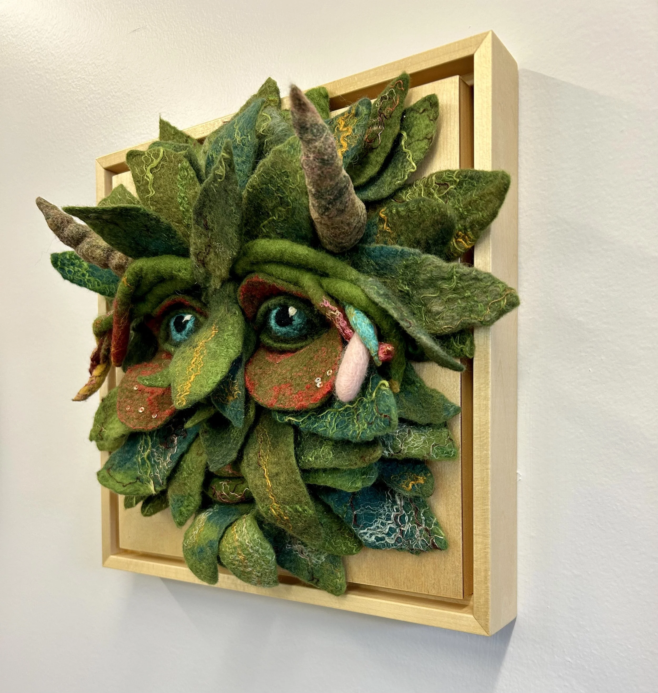 Teresa Kachanoski, S’elf Portrait as a Green Man’, 11” x 11”, Handmade felt, $475.00