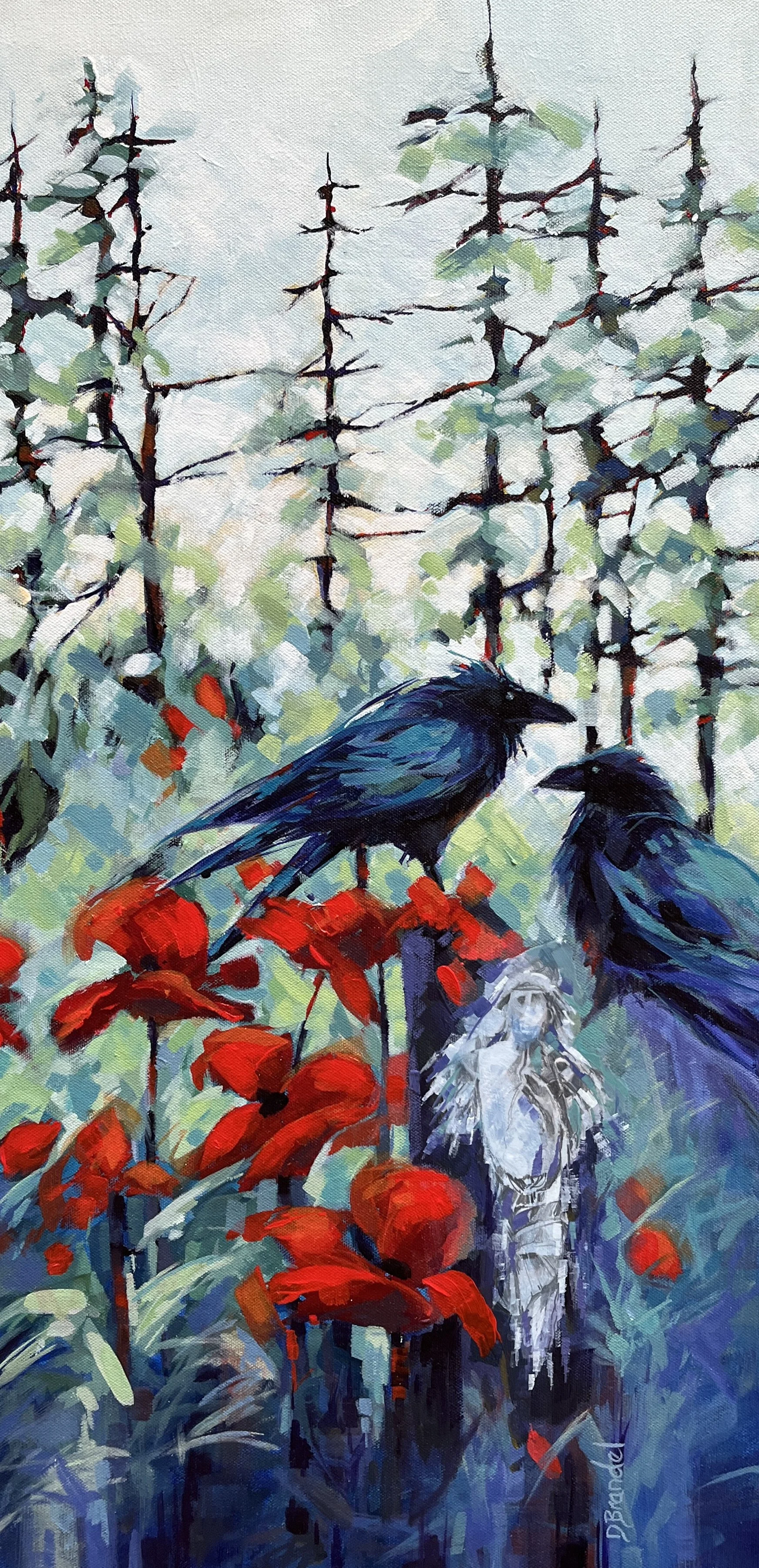 This piece titled 'Quietude', shares one of my favourite places to be, by the water, contemplating the beauty to be found there. The evening light, the still waters after a windy day and a moment to myself all add up to a serene peacefulness. I am grateful to have been able to spend most of my life on Salt Spring Island where the pace is slower and the delights of the natural world are never far away.