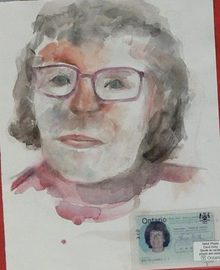 Portrait painter I am not! But it was fun to participate in this project. Laura is a retired high school English and art teacher. She is a Fellow of the OTTAWA Watercolour Society and former Show Coordinator and President of the local Arrowsmith Chapter of the Federation of Canadian Artists. Laura enjoys being one of the six resident artists in the Side Door Studio downstairs TOSH, welcoming visitors to the School House, talking art, and painting. Come down and visit our studio. We would enjoy seeing you.