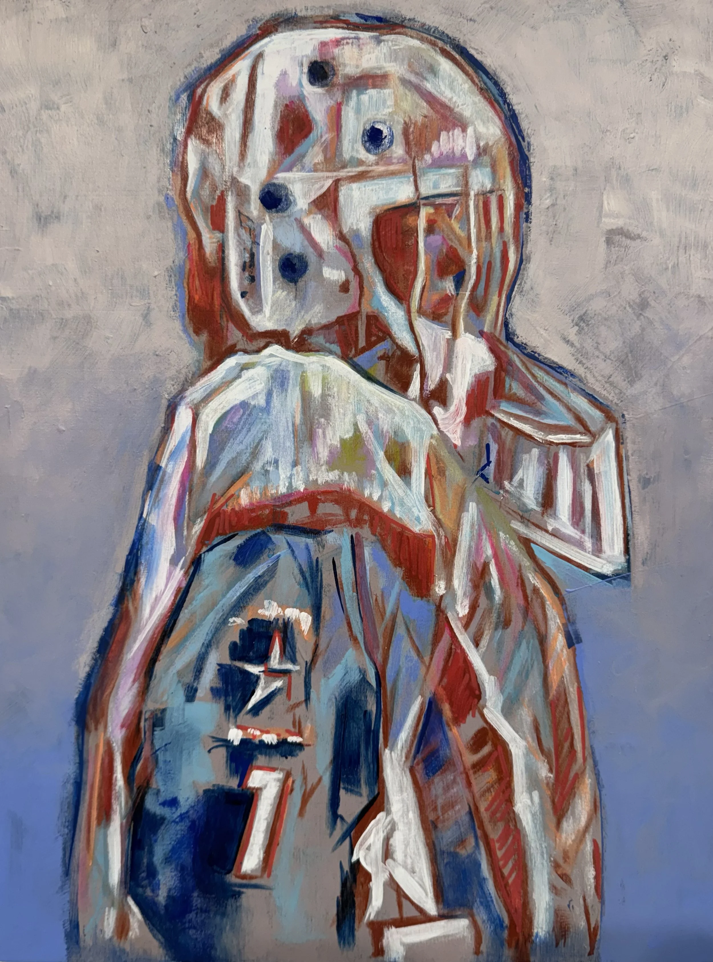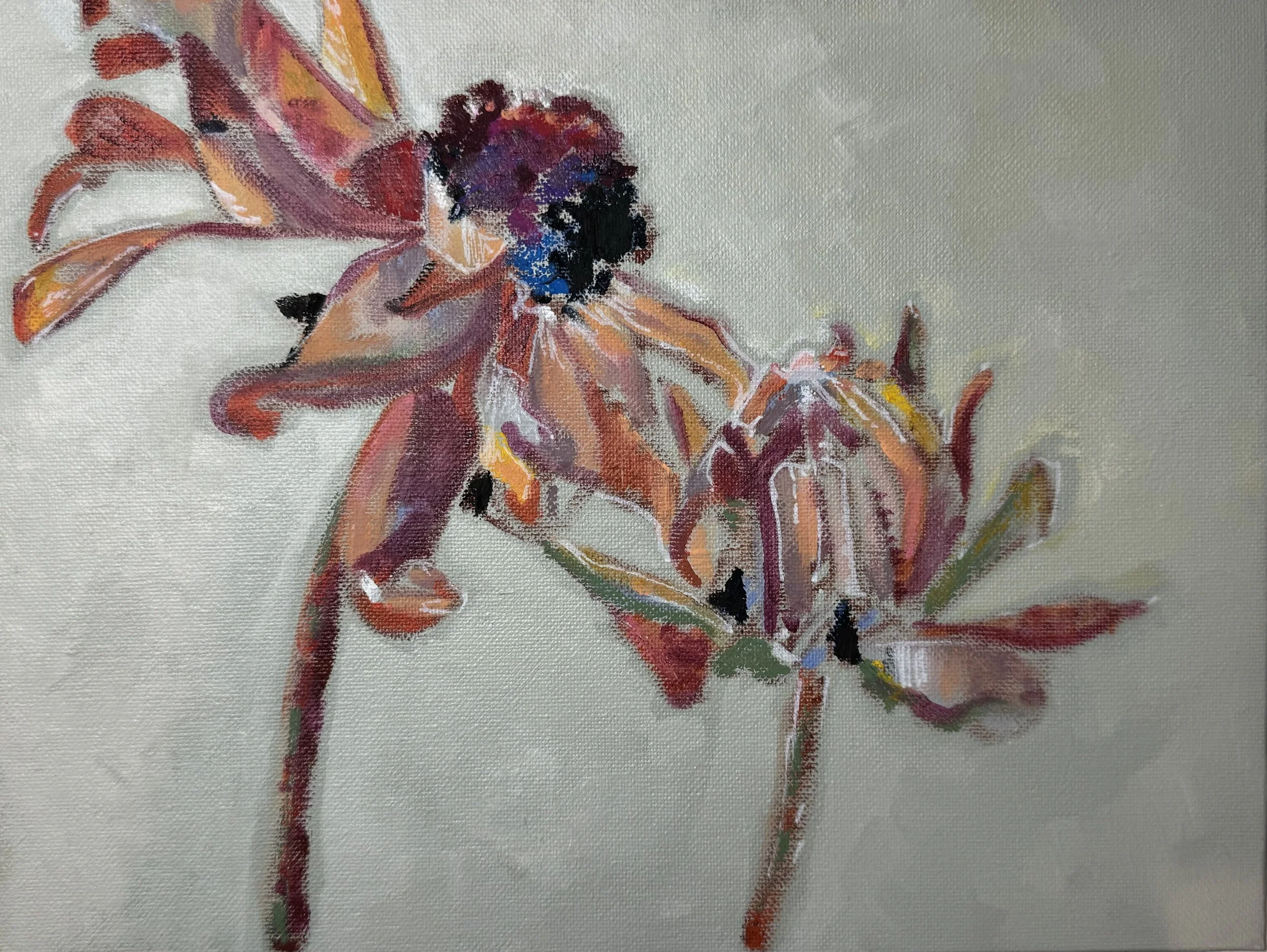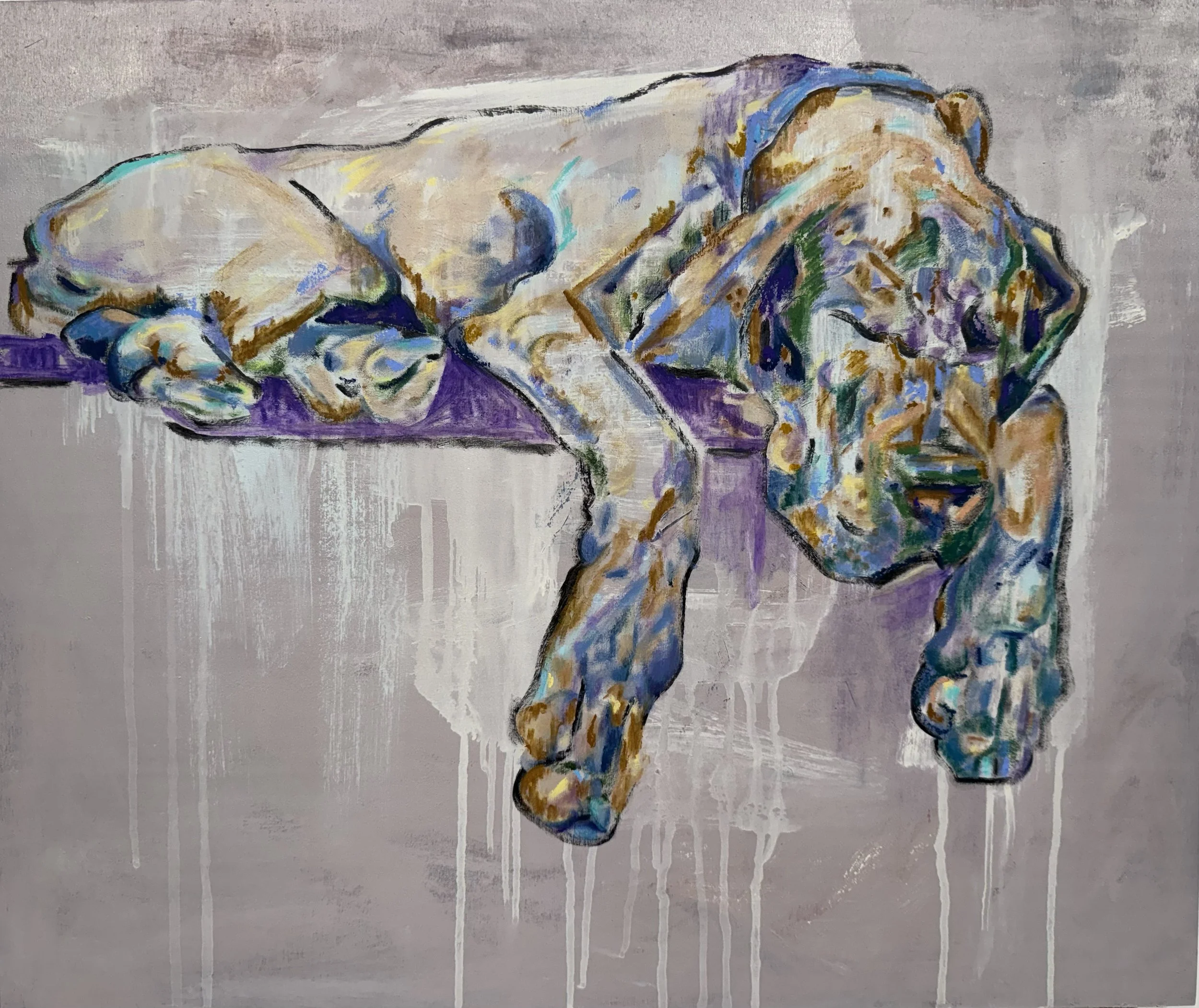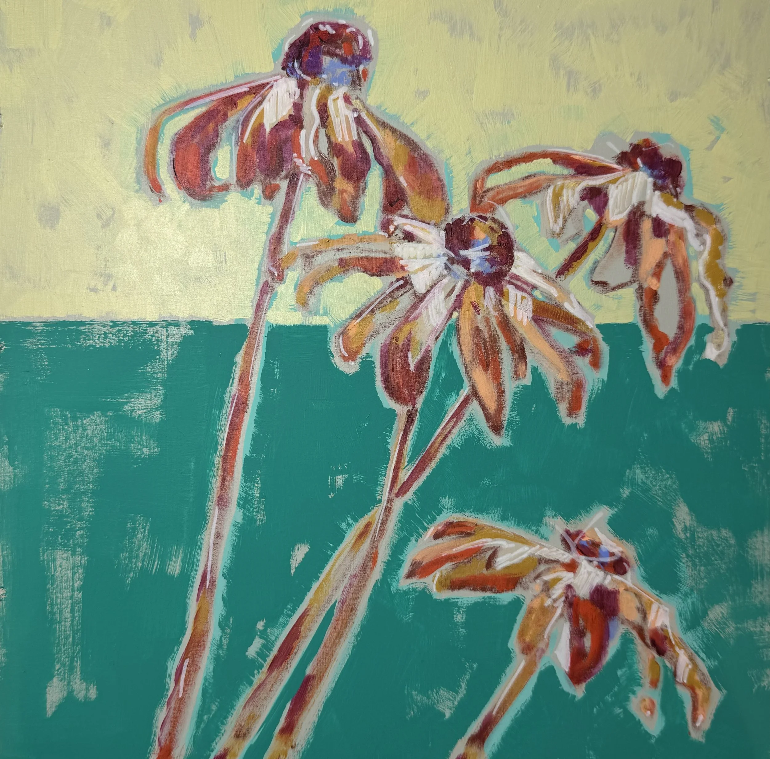 The pieces in this exhibit are a combination of old and new images that simply spoke to me. They helped me get to the canvas when I felt stuck. The title of this show is LET GO. A simple term that lent itself to many different meanings throughout the process. It originally was about letting go of the fear of getting back into the studio after so long. Will I be able to get that connection back with the brush? How will I find the time? What about my other responsibilities? Will it all come together? What will people think of my work? and so on.