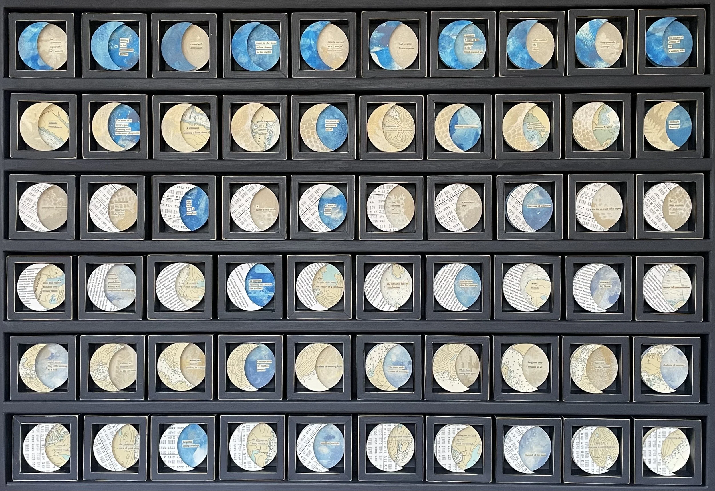 MoonTide is a playful, multimedia exploration of two interconnected aspects of “island time”: the ever-changing magic of the moon and the constant rhythm of the tide. MoonTide is more than a collection of works by three individual artists. The show celebrates the joy, surprises, and connections that arise when artists work together, sharing and combining their ideas and their creative process. Monica’s words, including an original song she wrote for the show, form the heart of the exhibition, giving life to and directly inspiring many of Ester’s and Janny’s works.