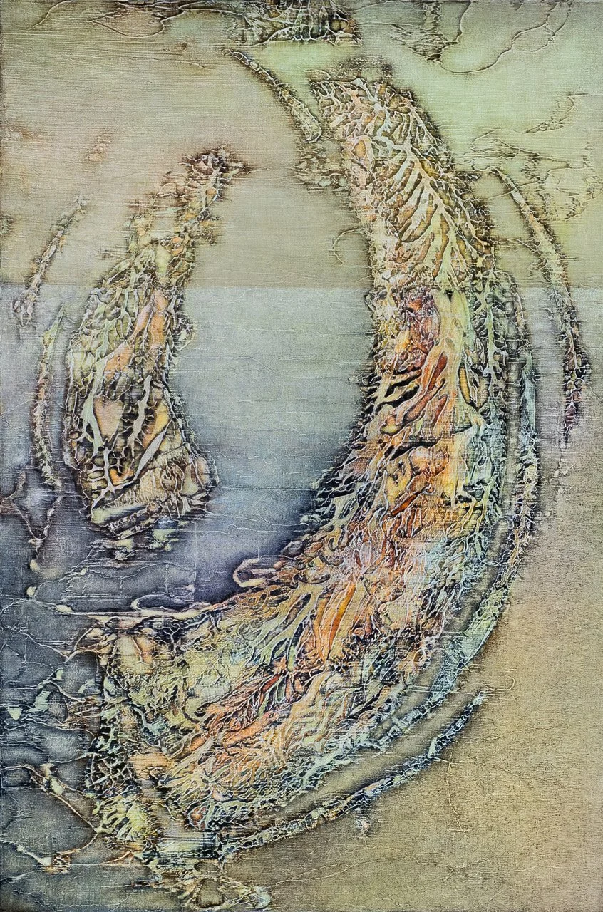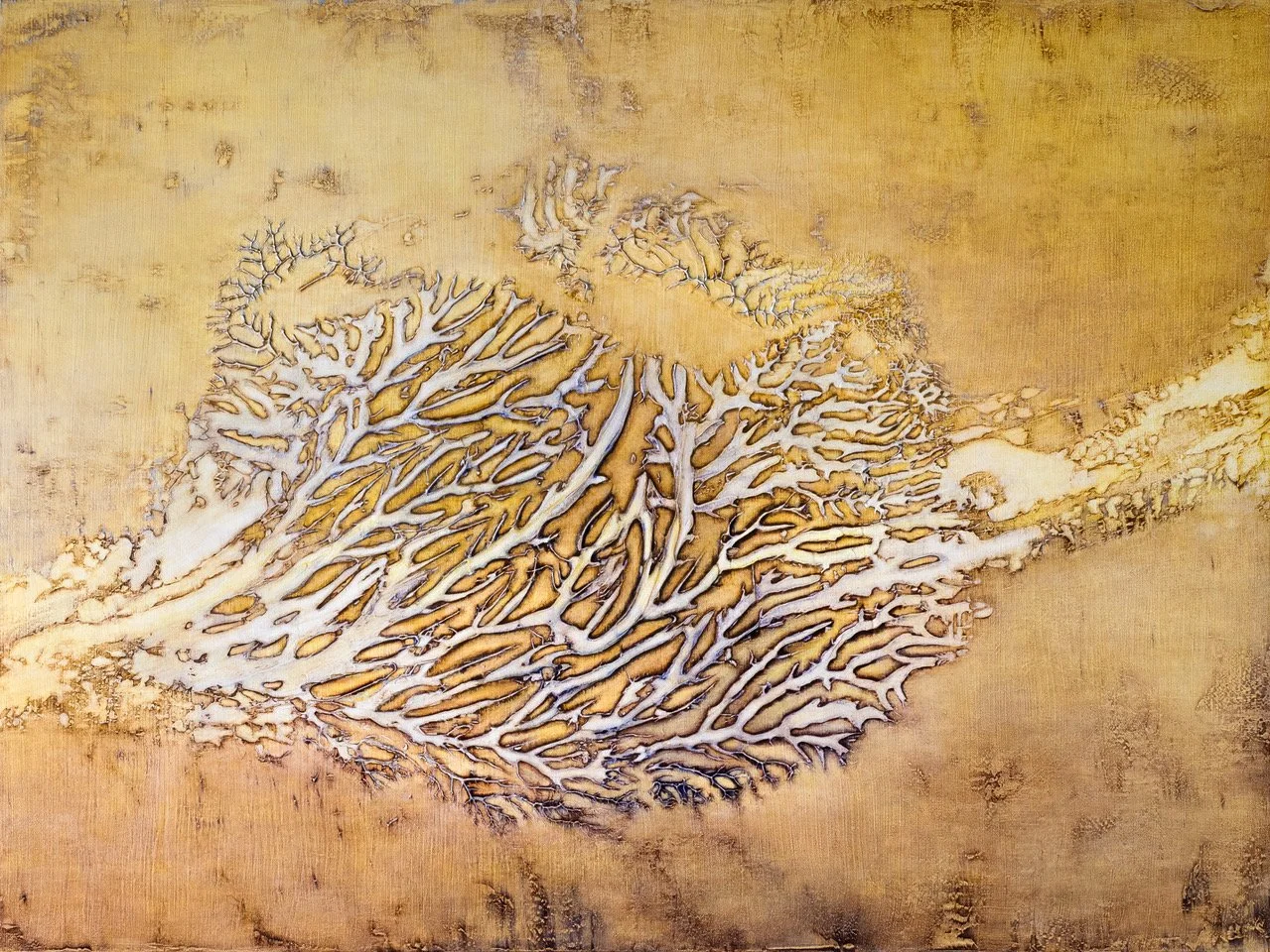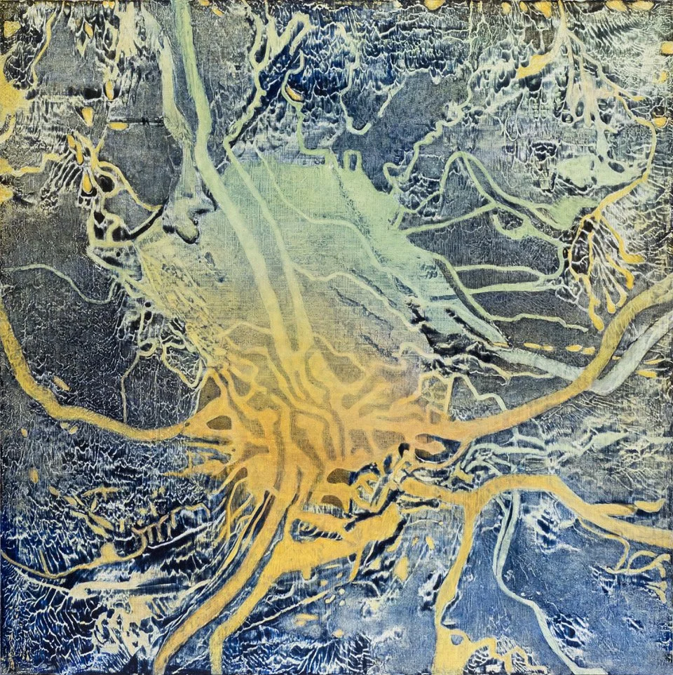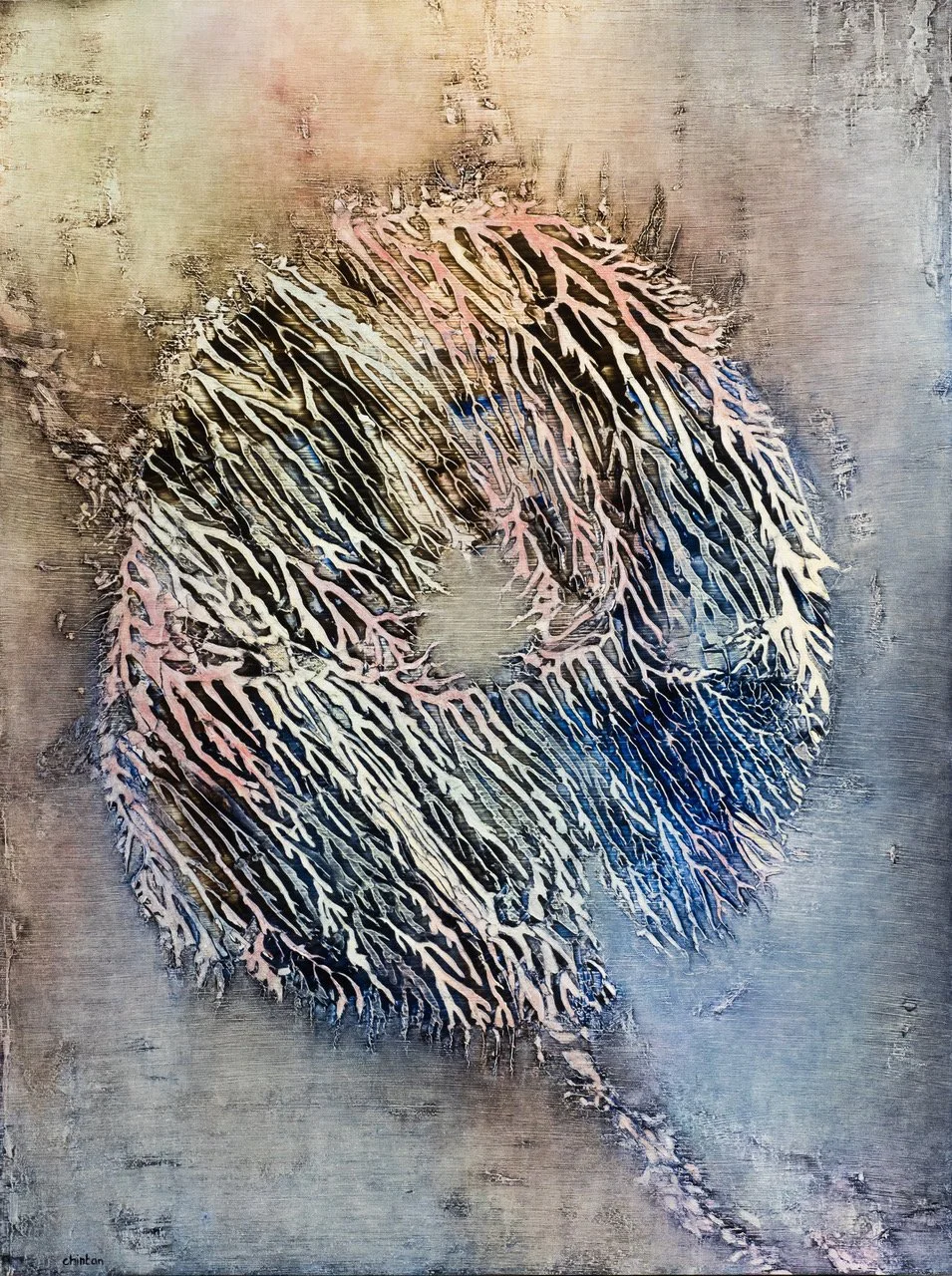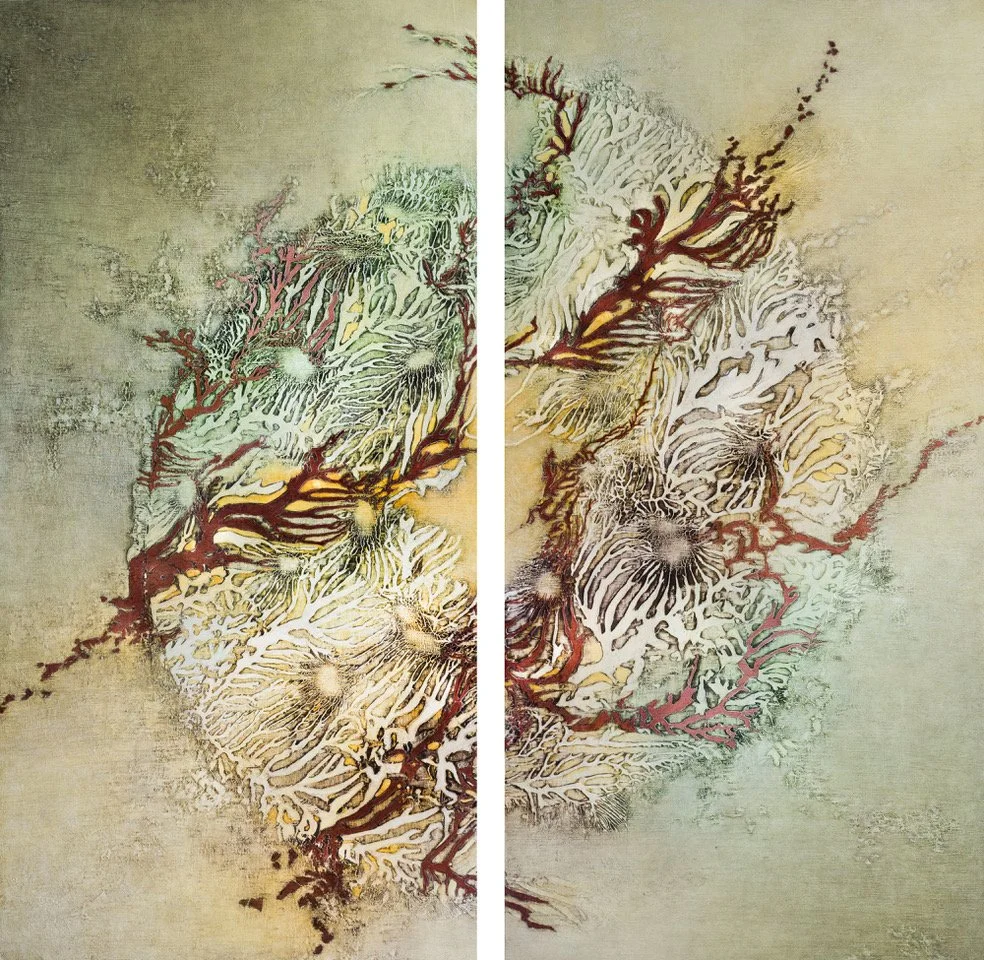 These works allude to the moment when a life form becomes animate, the viewpoint can be from a macro or micro perspective - this organic alchemy can be happening in the sky, in our bloodstream or in the soil beneath our feet. These re-imaginings are constantly manifesting around us.