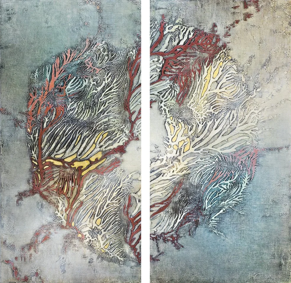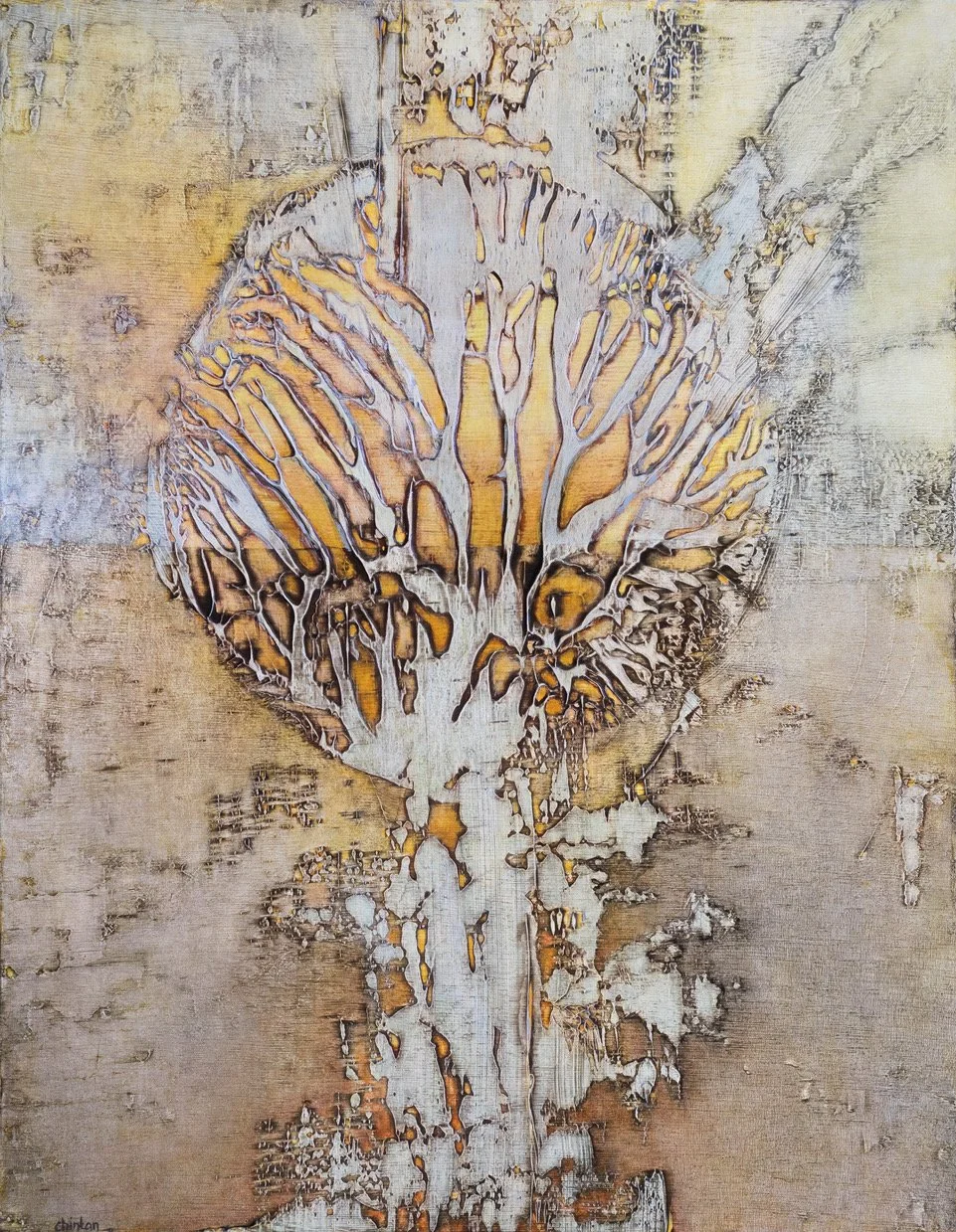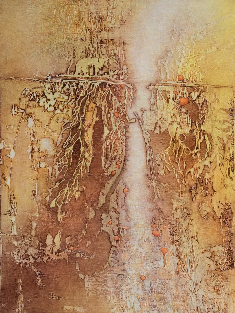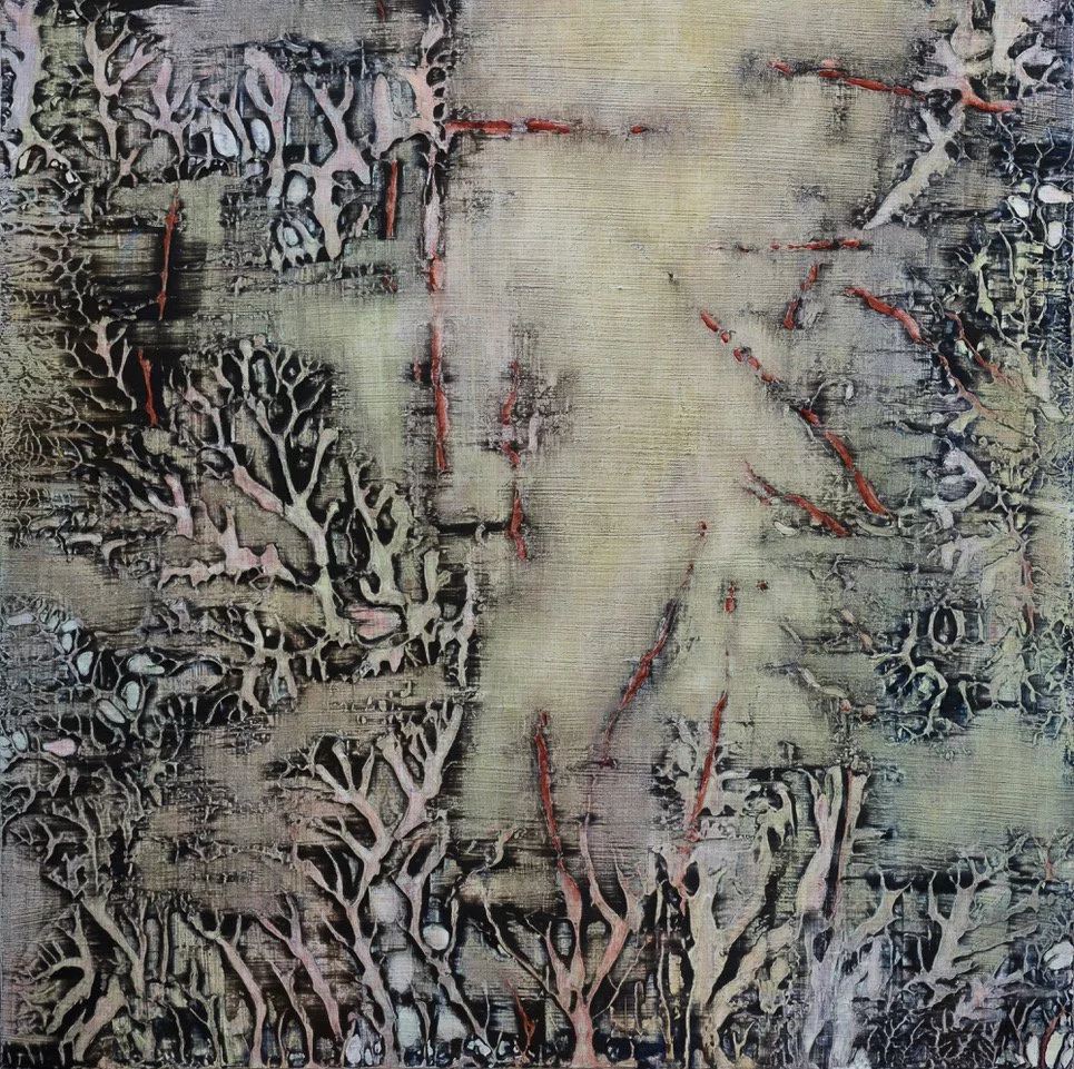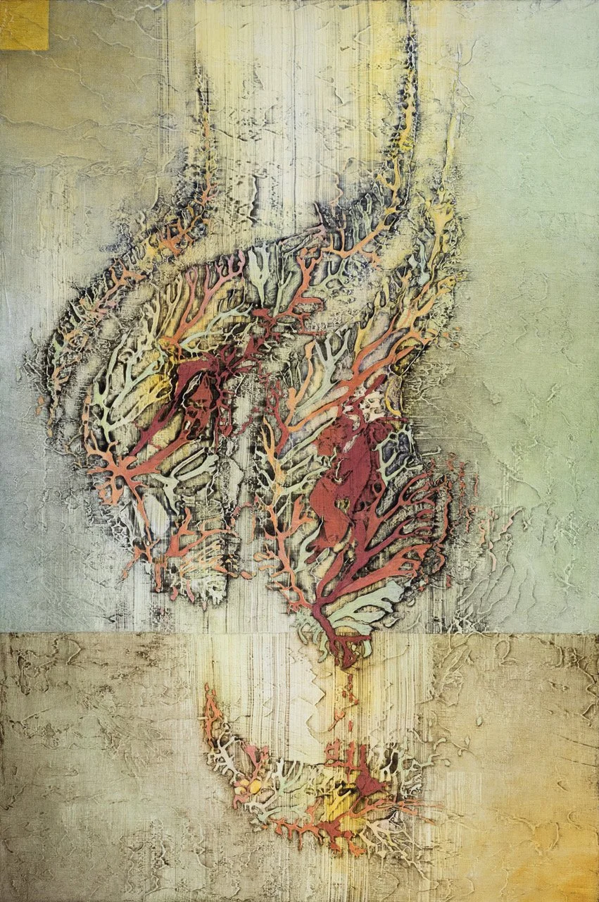 These works allude to the moment when a life form becomes animate, the viewpoint can be from a macro or micro perspective - this organic alchemy can be happening in the sky, in our bloodstream or in the soil beneath our feet. These re-imaginings are constantly manifesting around us.