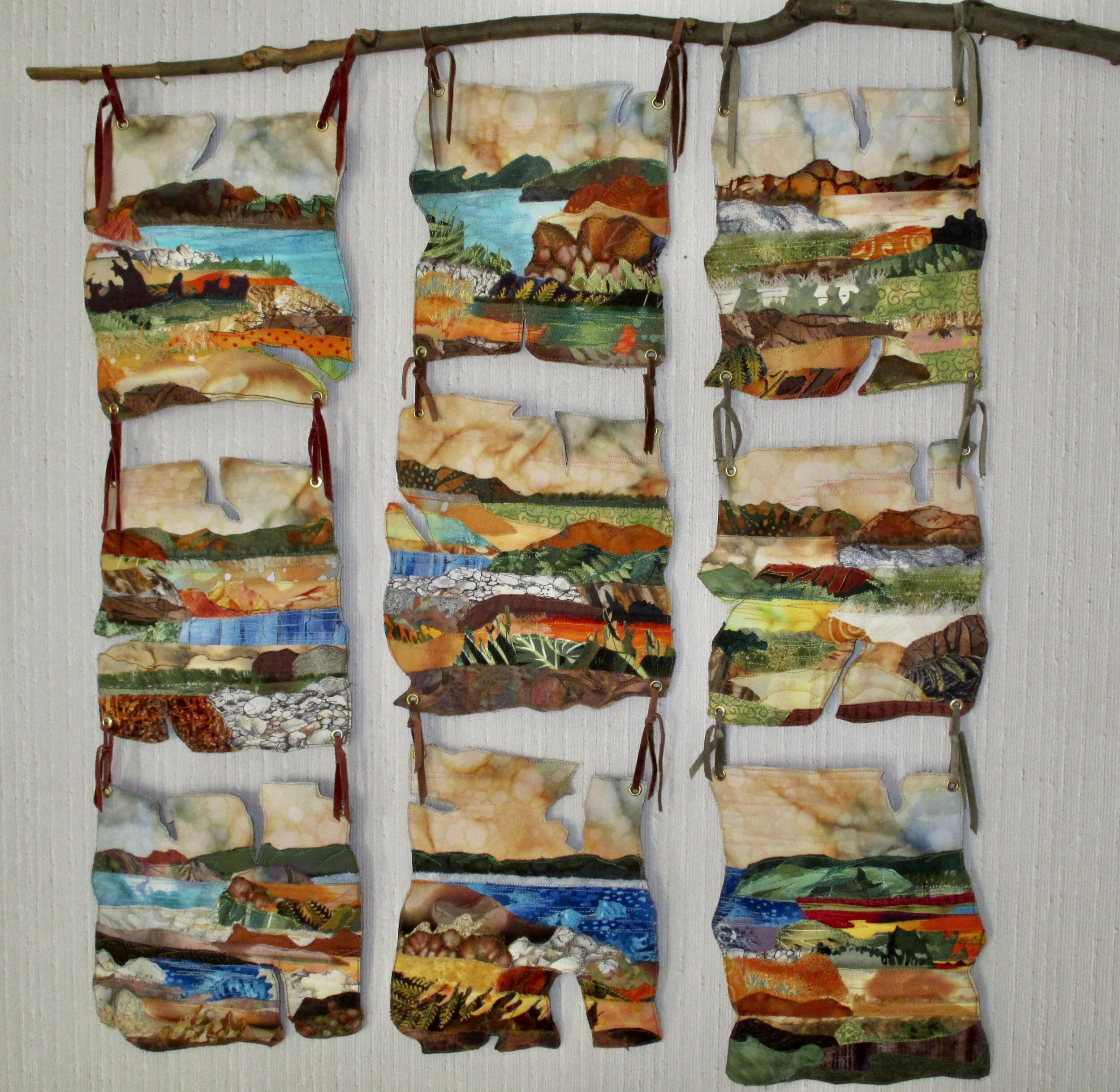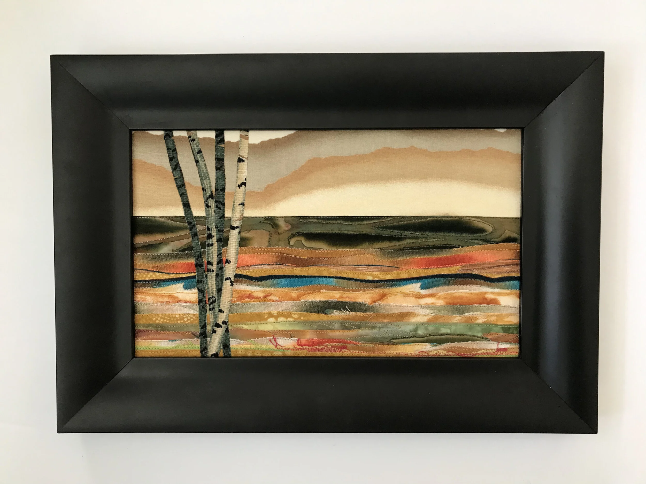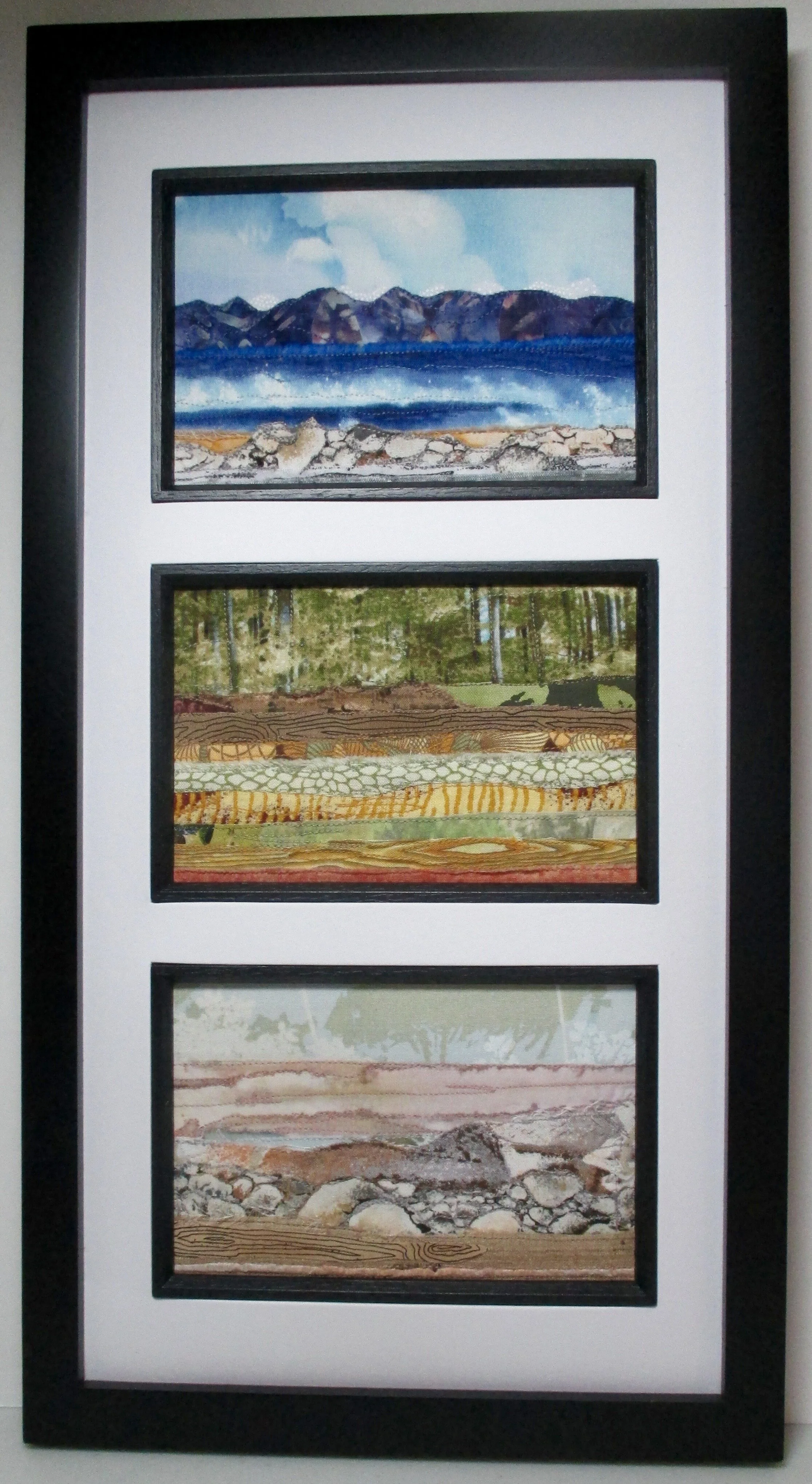 Each original landscape is a fabric collage inspired by nature, a play in pattern, color texture and depth of field. Framed Landscapes as well as Canadian Heritage Cards are available.